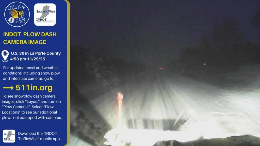 (Image courtesy Indiana Department of Transportation (INDOT) Northwest Facebook page, Saturday evening, November 29, 2025)